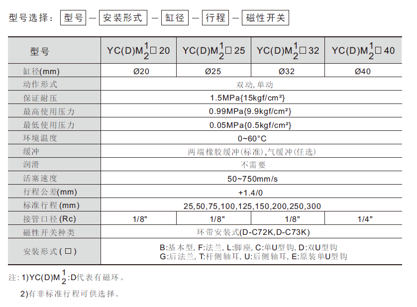 小型标準氣缸 YC(D)M1 YC(D)M2系列