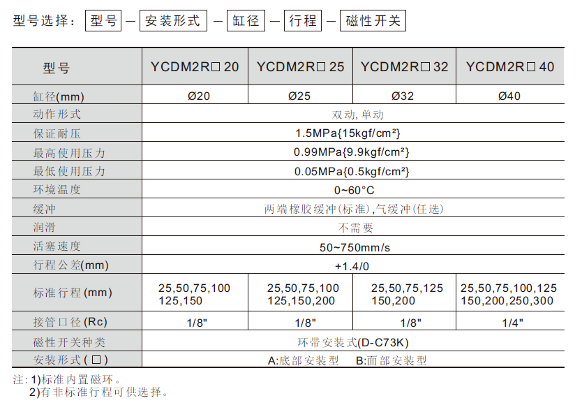 小型直接安裝氣缸 YCDM2R系列